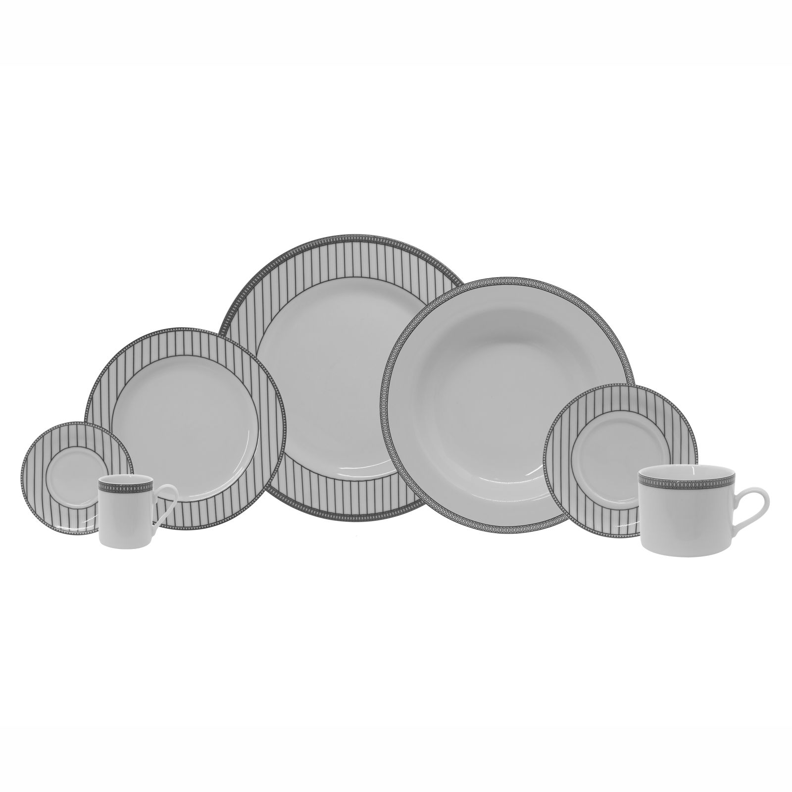 O jogo de jantar Aline conta com 42 peças produzidas com porcelana nas quais as listras mostram um novo jeito de servir. O conjunto serve até seis pessoas.