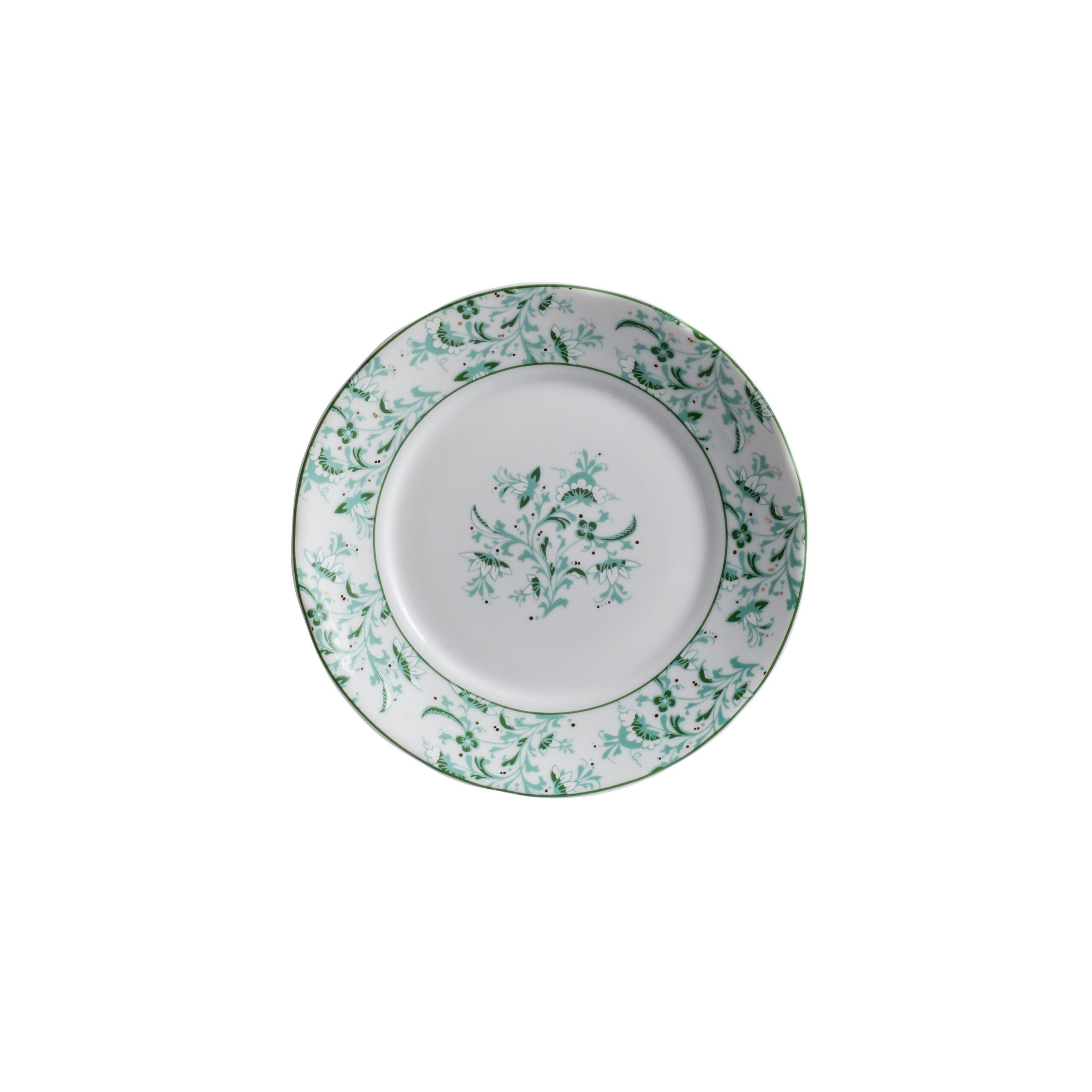 O jogo de jantar Búzios conta com 42 peças produzidas com porcelana, ouro e o contraste com a decoração de vegetação verde. O conjunto serve até seis pessoas.