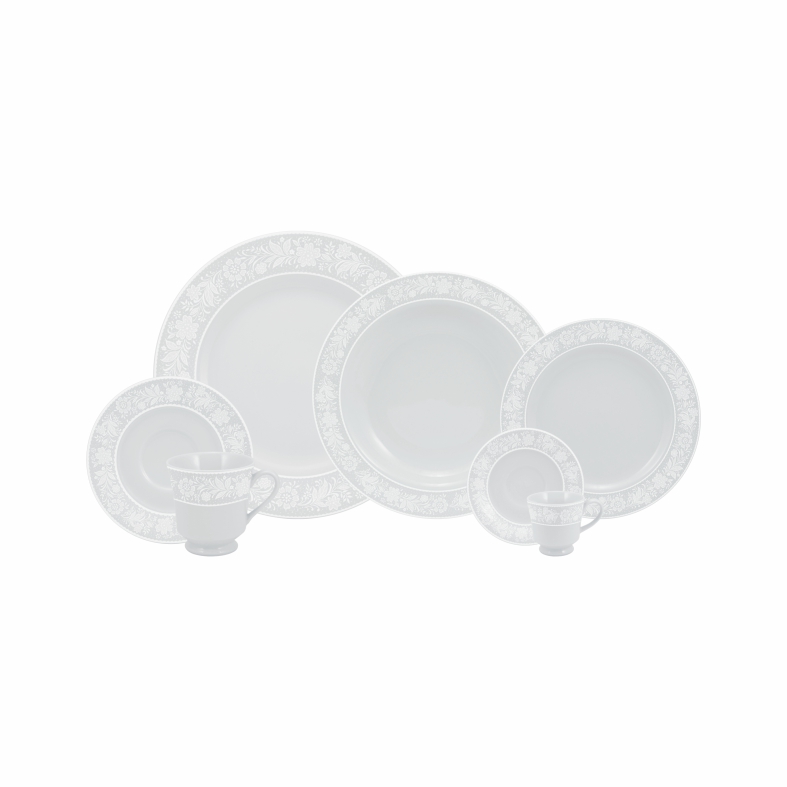 O jogo de jantar Noiva conta com 42 peças produzidas com porcelana e em que a delicadeza do branco inspira o dia a dia. O conjunto serve até seis pessoas.